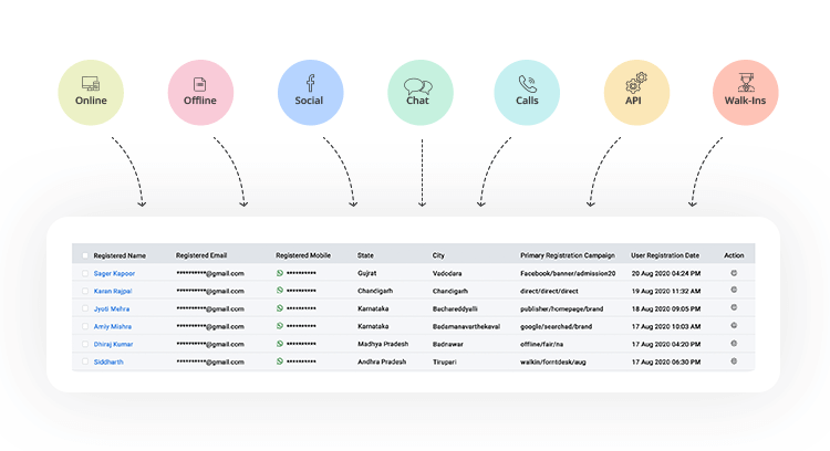 A prospective student might register a lead through email, social media, website, publishers, agencies, ads or simply, by walking in. The very first way in which an education CRM helps you is by centralising all your incoming leads across channels in one place.