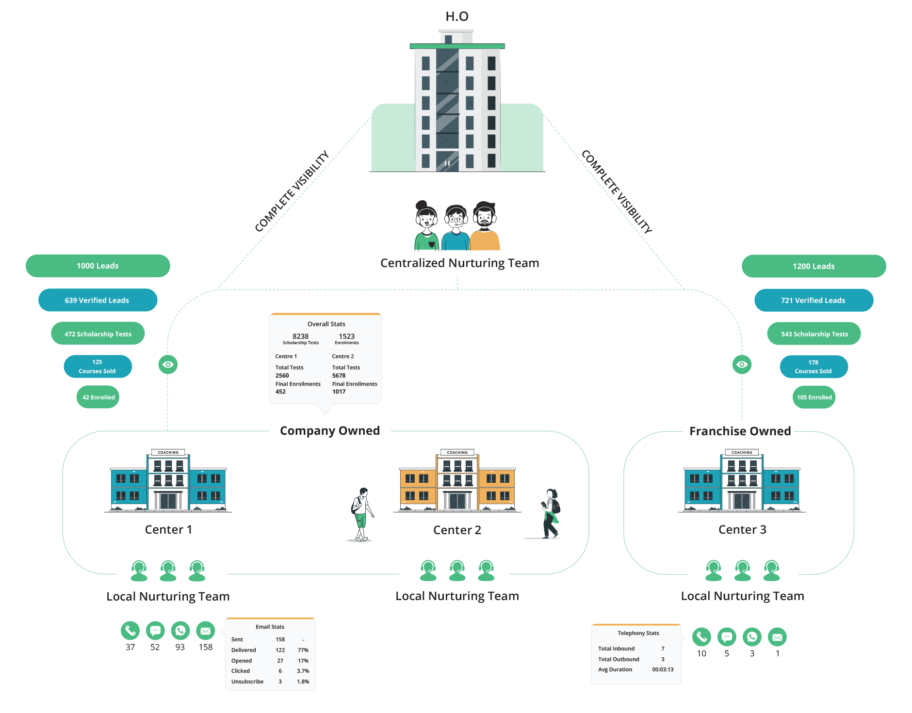 Leverage our comprehensive CRM platform designed specifically for coaching and multi-center training institutions, providing you with a deep dive into branch-specific operations. Streamline your team collaboration across different centers, centralizing data for effective student nurturing, upselling, and retention. With our user-friendly tools, you can ensure minimal drop-off rates and maximize student retention, boosting conversion rates. Deliver an outstanding experience that resonates with your brand and drives enrollments.