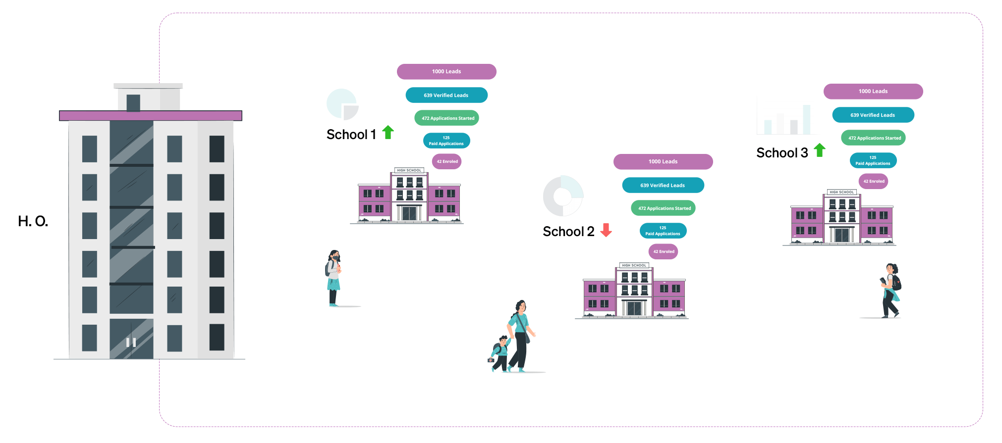 360° Visibility with insight-driven Dashboards. Stay on top of your school wise performance with robust Reports & Analytics. Identify the best performing channels, star performers in your team, the bottlenecks, and take strategic calls in real time.