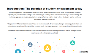 From understanding the evolution of student expectations to leveraging automation for human-like interactions, this eBook is packed with practical strategies to help you:- Deliver hyper-personalized messages across WhatsApp, chat, email, and more without losing the human touch.
