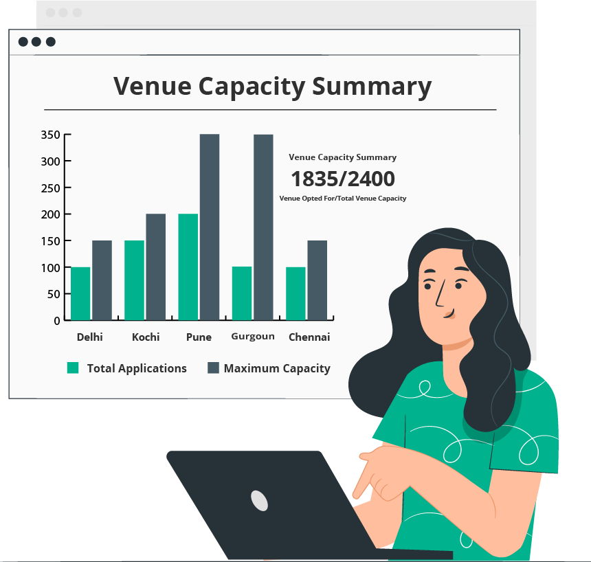 In case you are conducting your post application processes offline, you can define multiple venues for thousands of candidates at once and help them choose their preferred centres with minimal operational efforts. Set the maximum capacity of students dynamically for all the venues and experience the beauty of the system as all candidates are accommodated well before the final day of the interview!